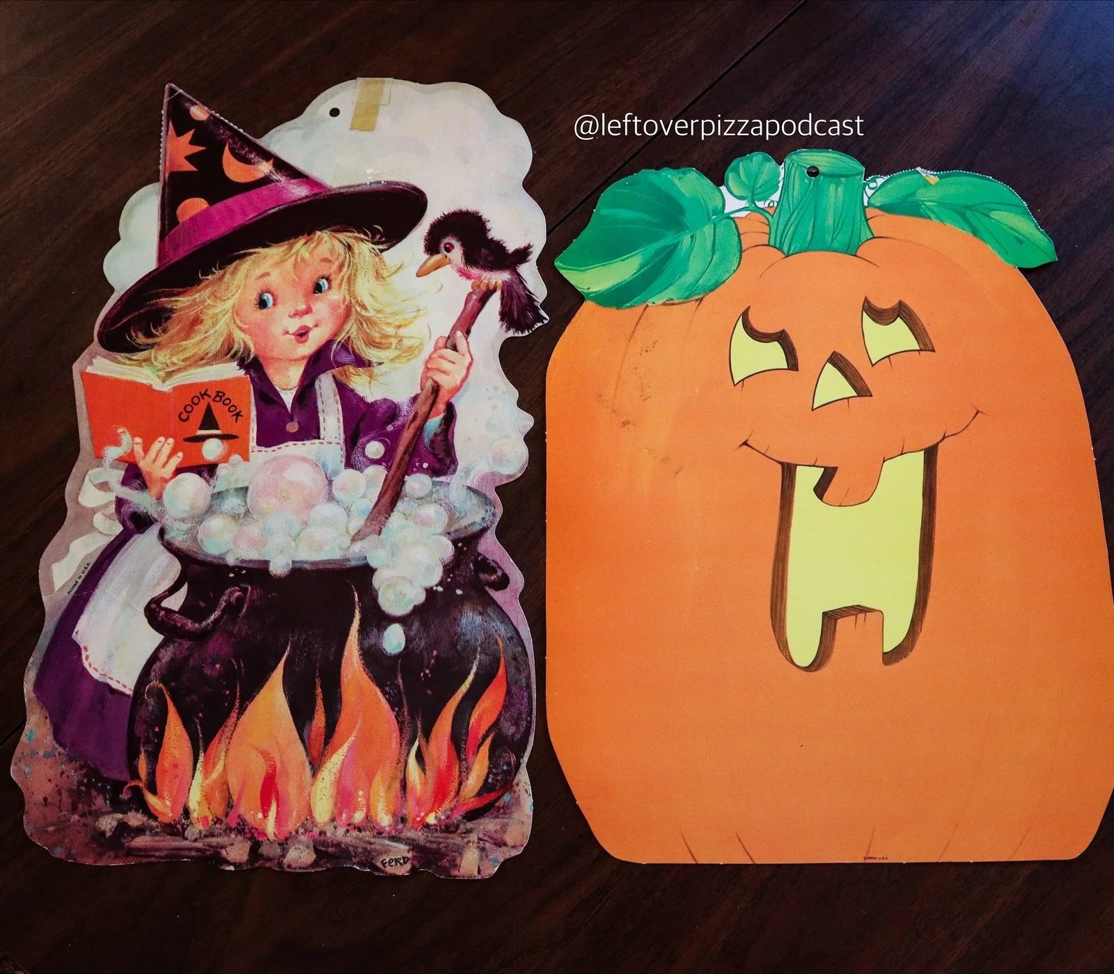Imagine my shock when I realized we'd unearthed vintage die-cut decor and trick-or-treat bags (bags not pictured - saving them for later) - some of which I'd been lusting after on eBay to share this season. The attic gods heard my spooky prayers and decided to deliver - for free! Oh, and I can’t forget the sweet glow in the dark witch poster!
