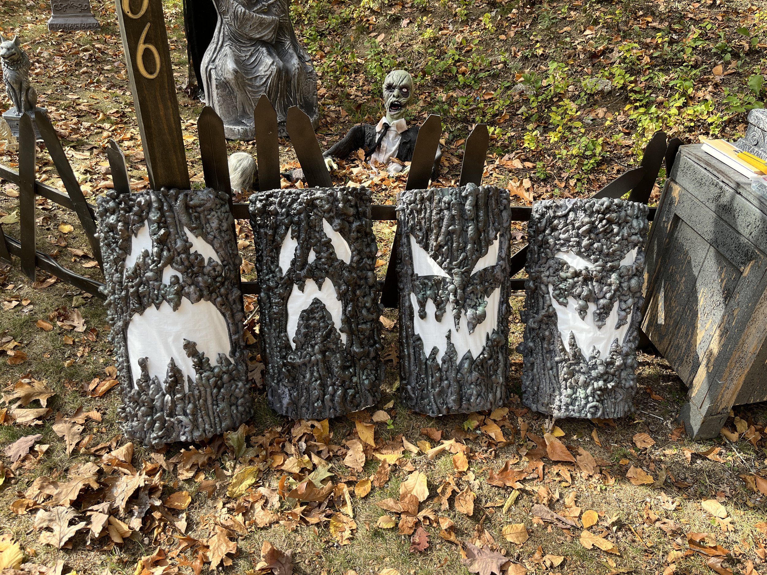 I mean sure I helped him a tiny little bit, but these are basically him all the way. From the inception to the design to the lighting rig, this was birthed straight from his brain. They look absolutely killer! Nothing gets me more in the spirit than spending a day out in the beautiful Fall weather and taking a big whiff of fresh spray paint. Does anyone else also have Halloween memories that are tied to the smell of spray paint, or is that just me?