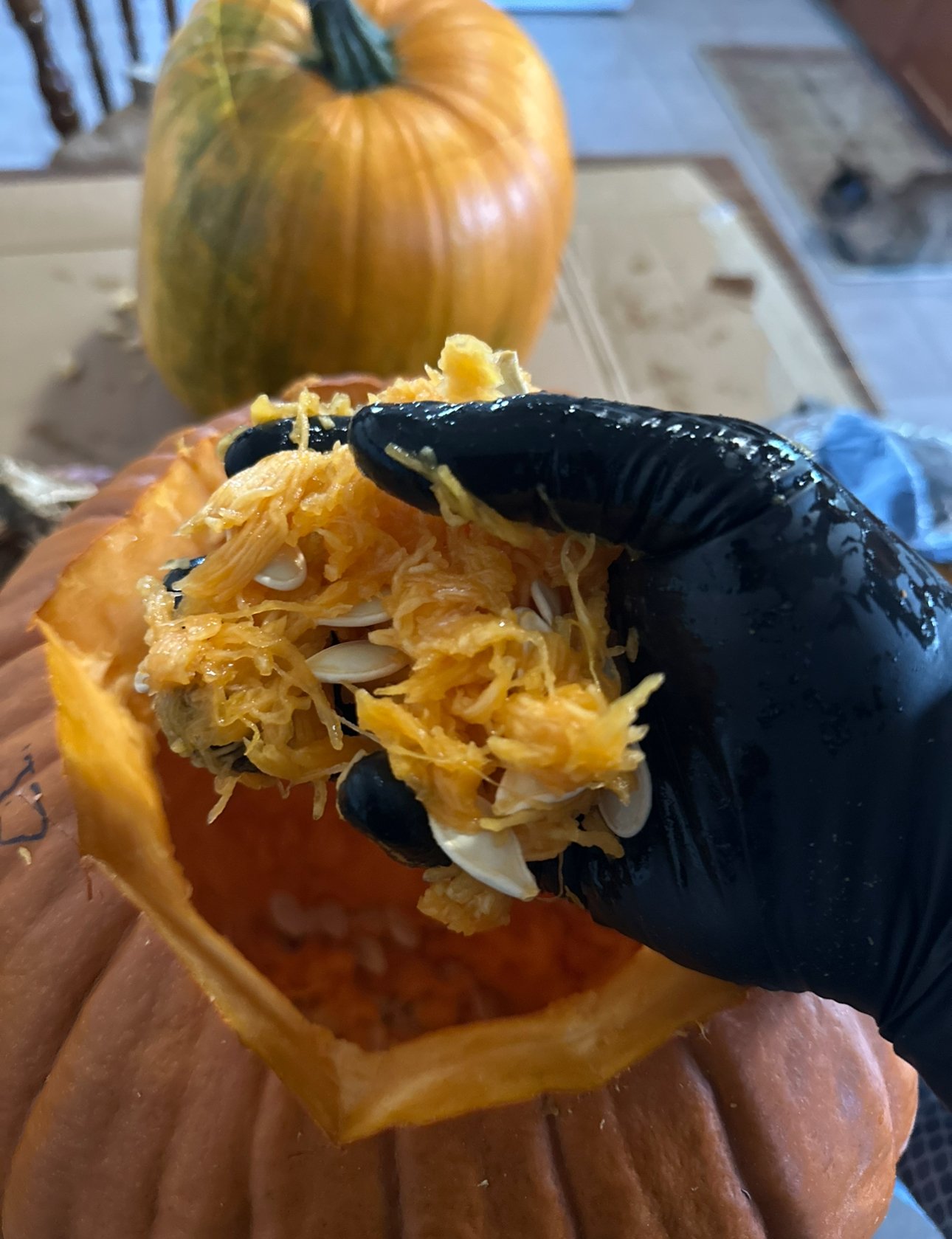 This year, I had the pleasure of sharing pumpkin carving with the girls and one of their boyfriends (after I hollowed the pumpkins all out first of course—the kids were thrilled with this). As a Halloween enthusiast, I'm always curious how newer generations view the season. It's not exactly the same as when we were young, but there's a lot to appreciate listening in from the sidelines. Through the night, I got to hear all the banter: how terrible the frozen pizza was (it was indeed terrible—Digiorno and I need to have words), what costumes they'd wear, how dressing up as the Joker is apparently "mid," and perhaps the best part—hearing about the pranks they used to pull on each other, like using ketchup instead of strawberry syrup for milk and switching salt for sugar. At one point, the oldest confessed to fake running away by walking down the street with a suitcase full of her belongings—to which the youngest promptly replied from the next room, "why didn't you keep walking?" Sisterly love at its finest.