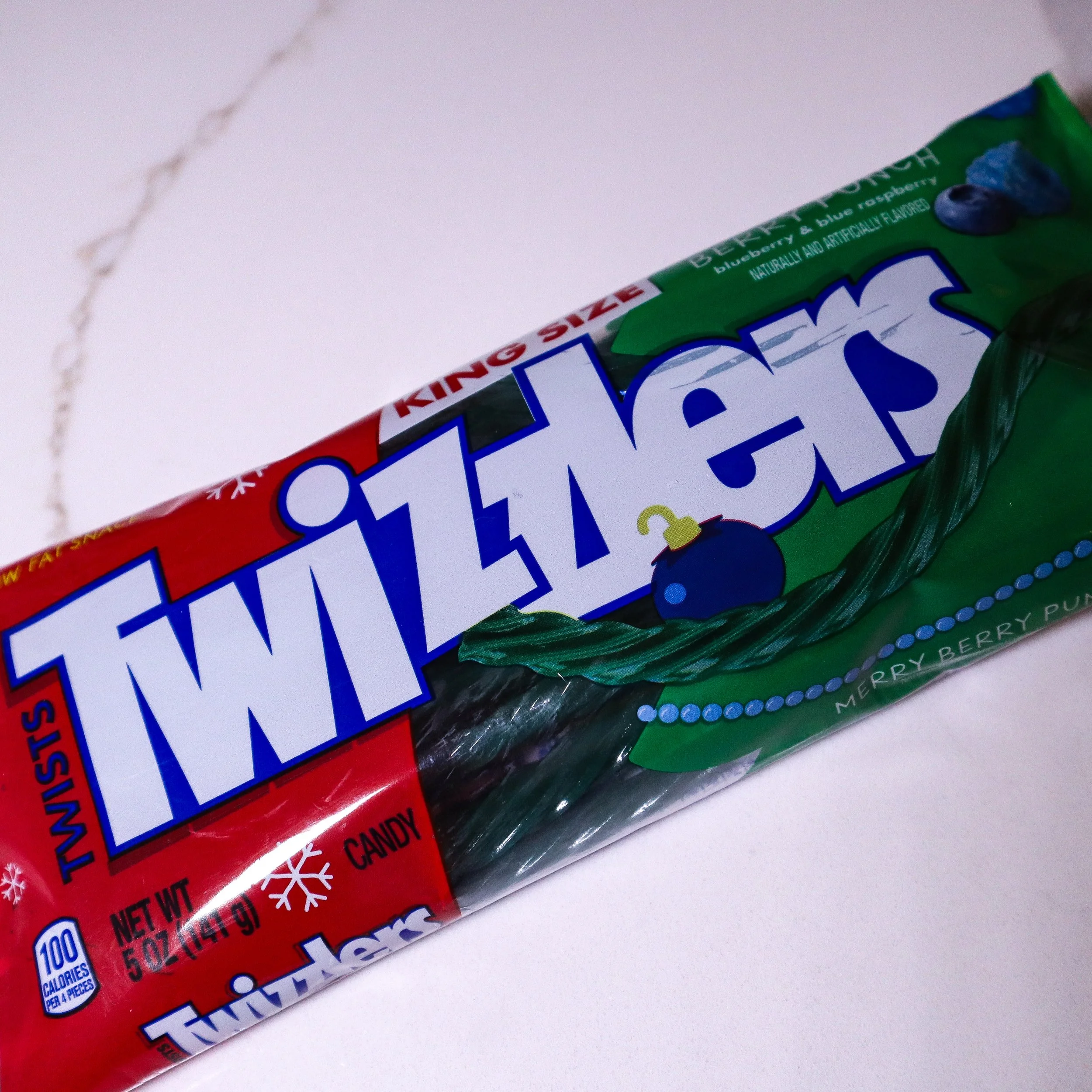 Someone at Twizzlers HQ said, "What if we made licorice that looks like we mugged a Christmas tree?" And thus, these festive green twigs were born. The flavor is supposedly blueberry and blue raspberry, but as a certified '90s kid who practically mainlined blue raspberry everything, I can tell you the blue raspberry is super muted. What I’m getting instead is a surprisingly decent blueberry pie filling vibe that somehow got lost on its way to an actual pie. Props for the color though. 6/10