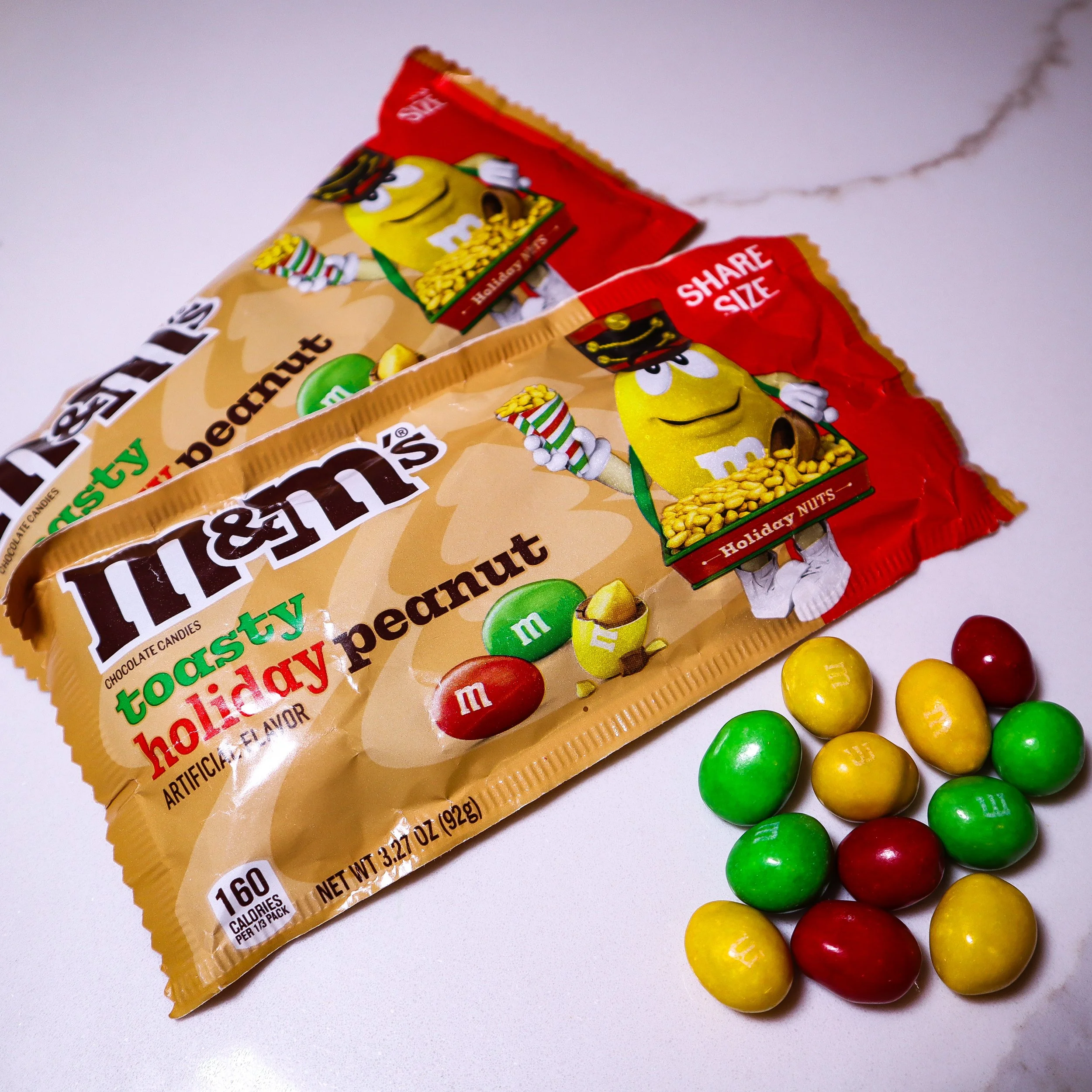 Ladies and gentlemen, we have a winner. These aren't just M&Ms; they're M&Ms that went to finishing school and came back with a monocle. The packaging is saying "department store Christmas display circa 1952," and I'm here for it. The peanuts taste like they just came from a fancy toasting spa retreat, and the chocolate seems to have gotten the memo about being part of something special. Every bite feels like you should be wearing a smoking jacket and discussing the stock market. It's so sophisticated, I've started calling my cat "Sir Whiskers" and speaking with a vaguely British accent. 10/10