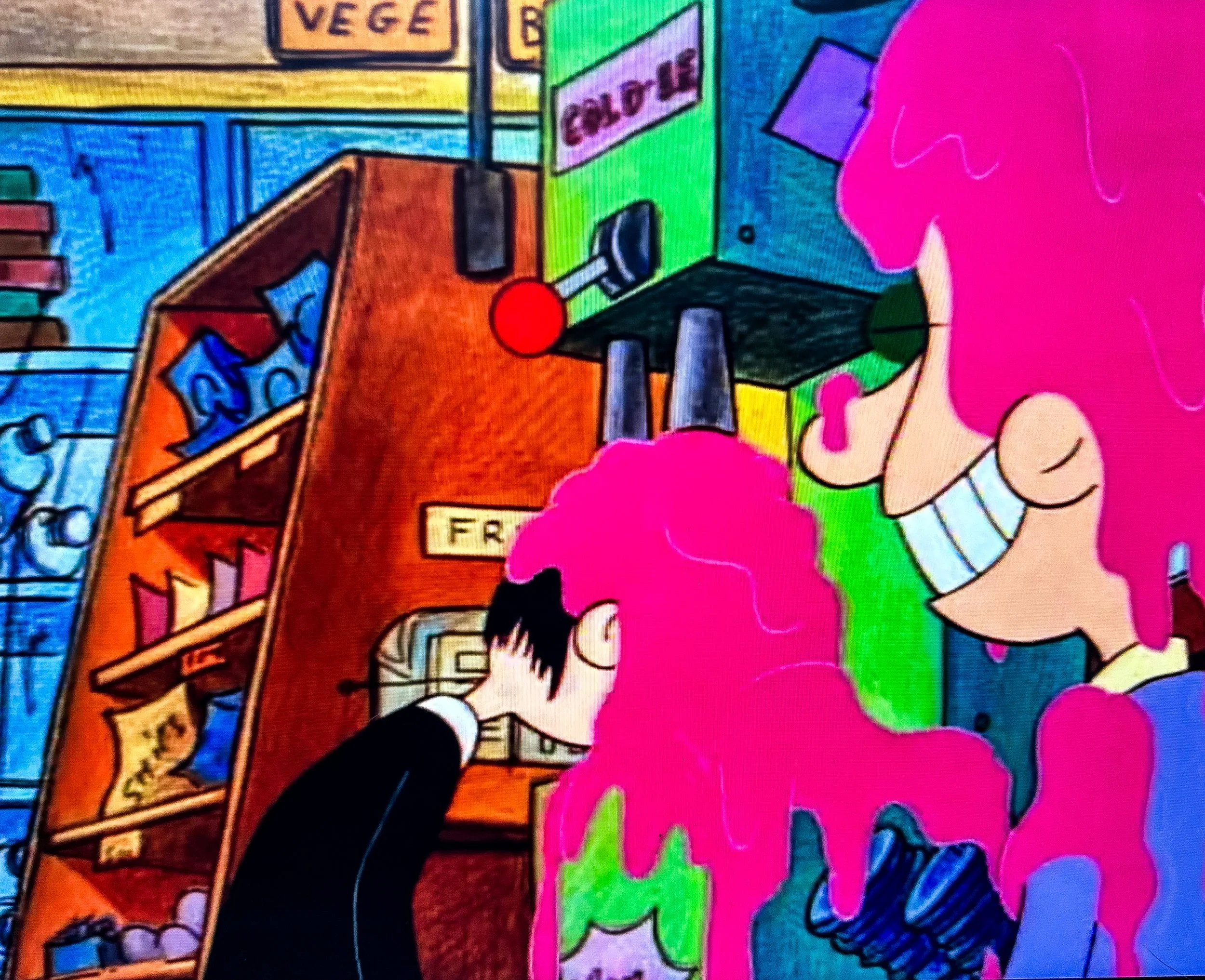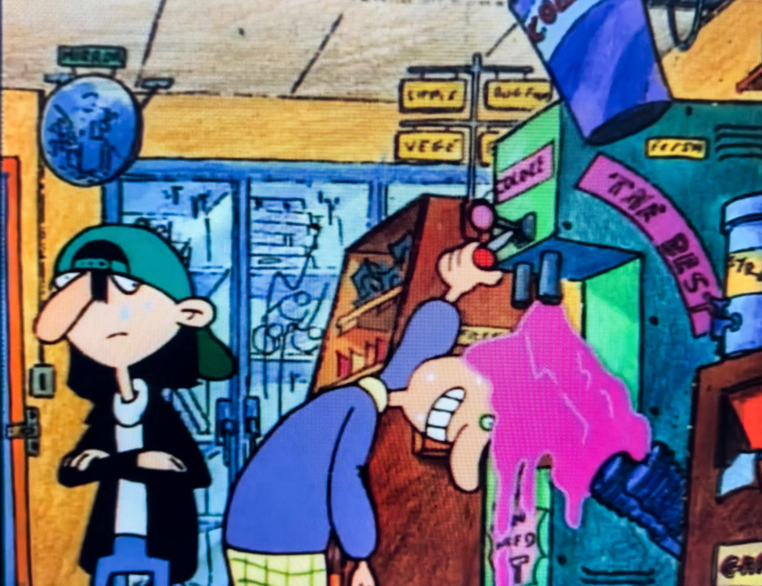 The scene that lives rent-free in my head? Sid getting pissed at his buddy for taking too long using the slushy machine like a baptismal font. The magenta, sludgy frozen drink looks bizarre, but they're enjoying it in ways never intended.