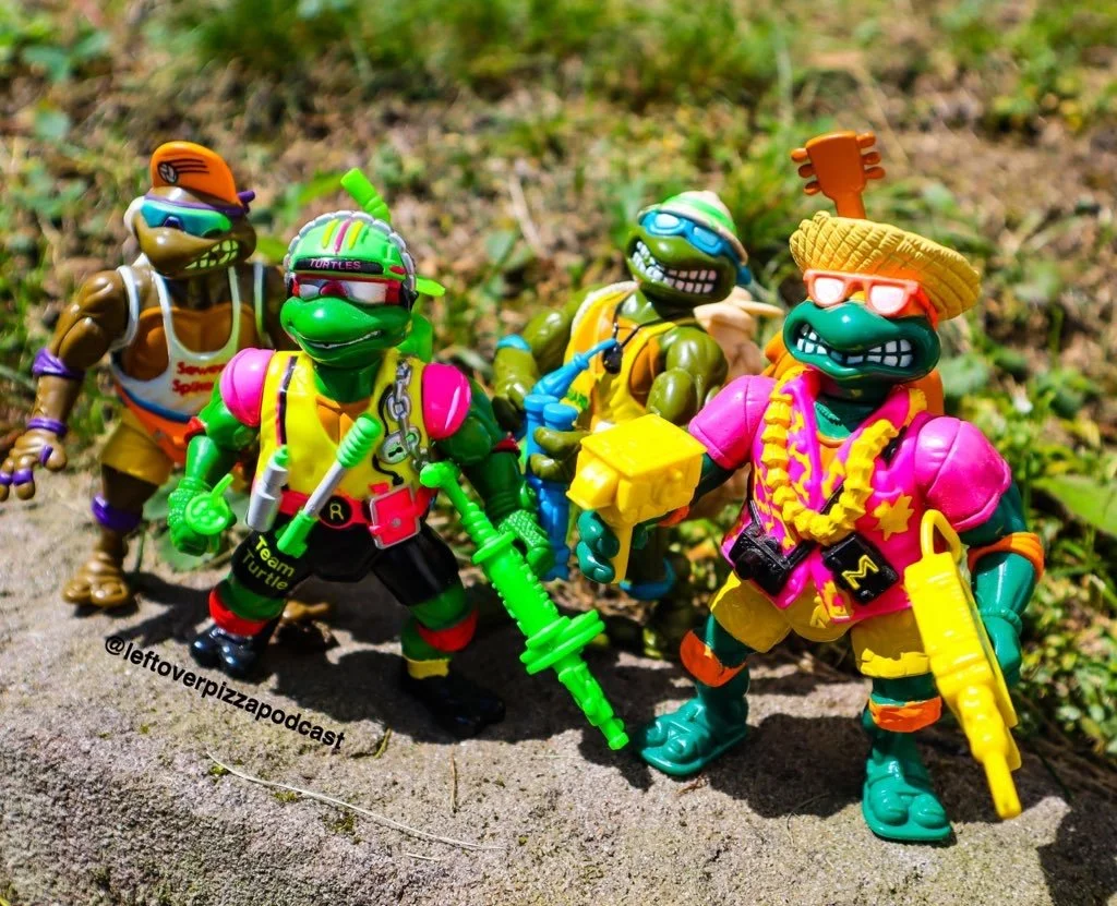 1992 - the year fashion forgot but toy designers clearly remembered! When people say that the 80s blends into the early 90s, this is what they mean. Here we have one of the most summery, colorful lines from Ninja Turtles in Playmates Toys history. The lineup: Beach combing Mike, Lifeguard Leo, Sewer-Cyclin’ Raph and Spike N’ Volley Don.