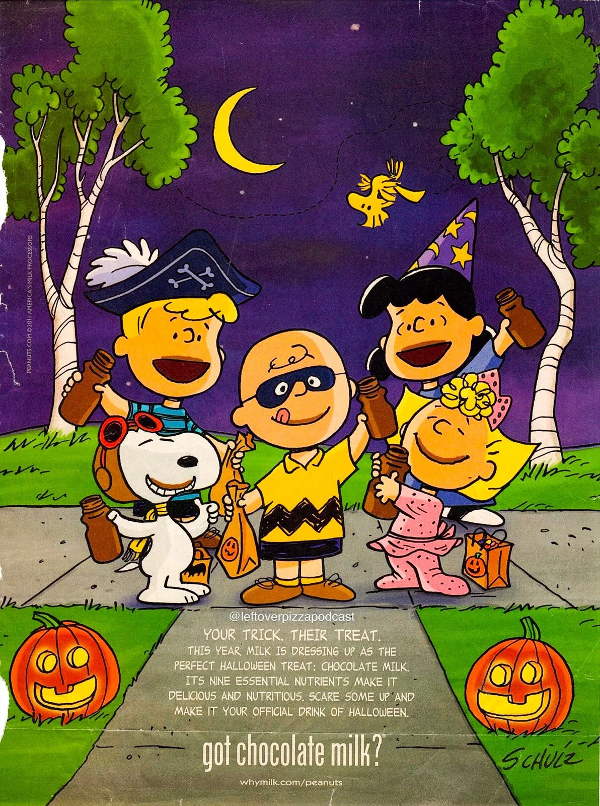 Since 1993, we’ve seen all walks of pop culture featured in the “Got Milk” campaign but it wasn’t until 2011 that the Peanuts gang traded their usual antics for milk mustaches and honored chocolate milk as the official brew of All Hallows’ Eve.