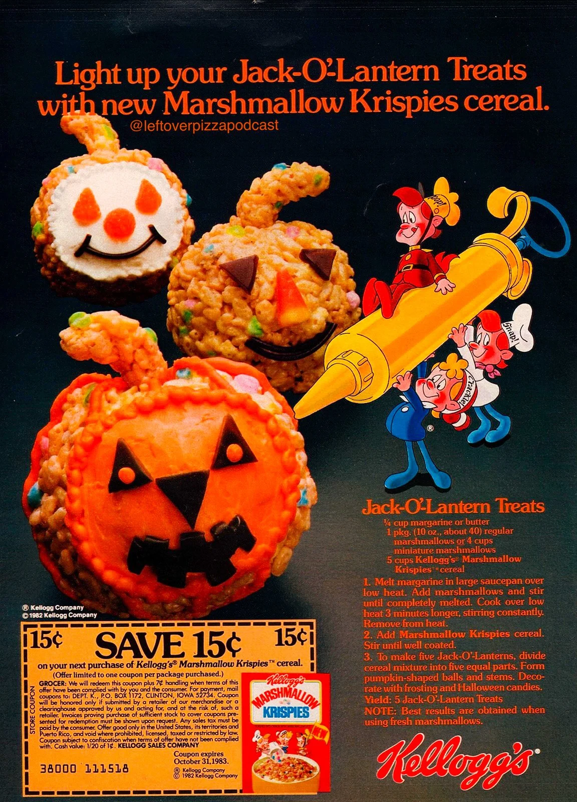 Before they decided to melt the two together for a cereal of their own in the 90s, we were given Marshmallow Krispies cereal in the early 80s. If you were lucky enough, you would’ve come across this advertisement with a coupon for a whopping 15 cents off your next purchase of the cereal. Inflation, am I right?