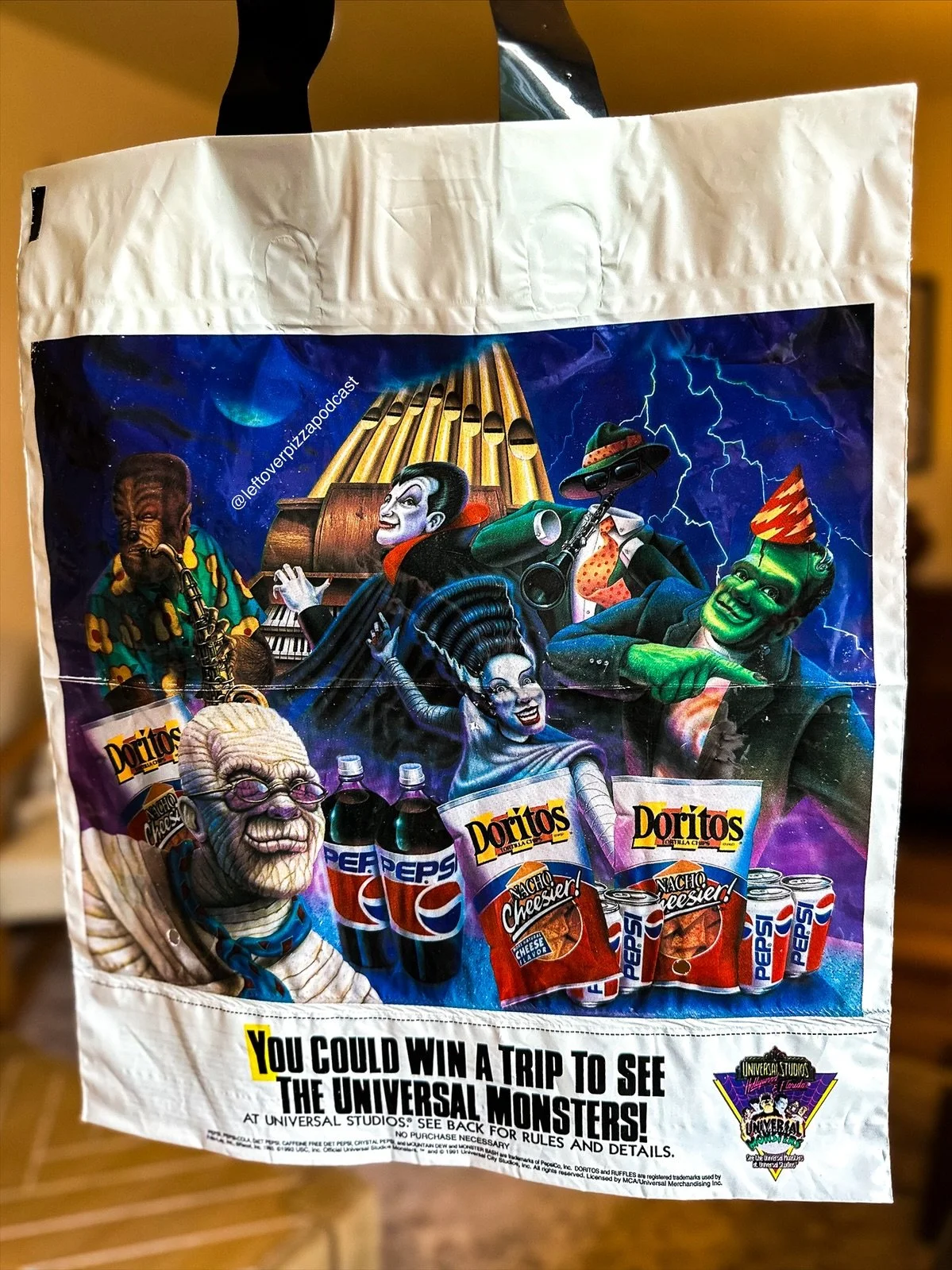 The bag is dated “91” but I’m almost positive this was from the 93 promo judging by the similar 3D art style on the boxes of that year. Side note: The Creature from the Black Lagoon was apparently too good for this party. Probably off doing indie films or something.